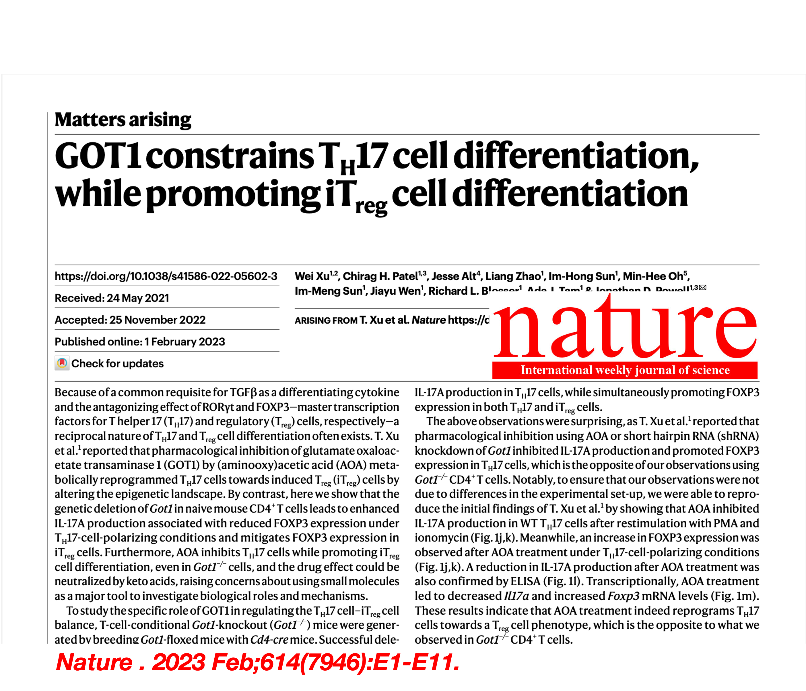 • GOT1 constrains TH17 cell differentiation, while promoting iTreg cell differentiationJanuary 21, 2018